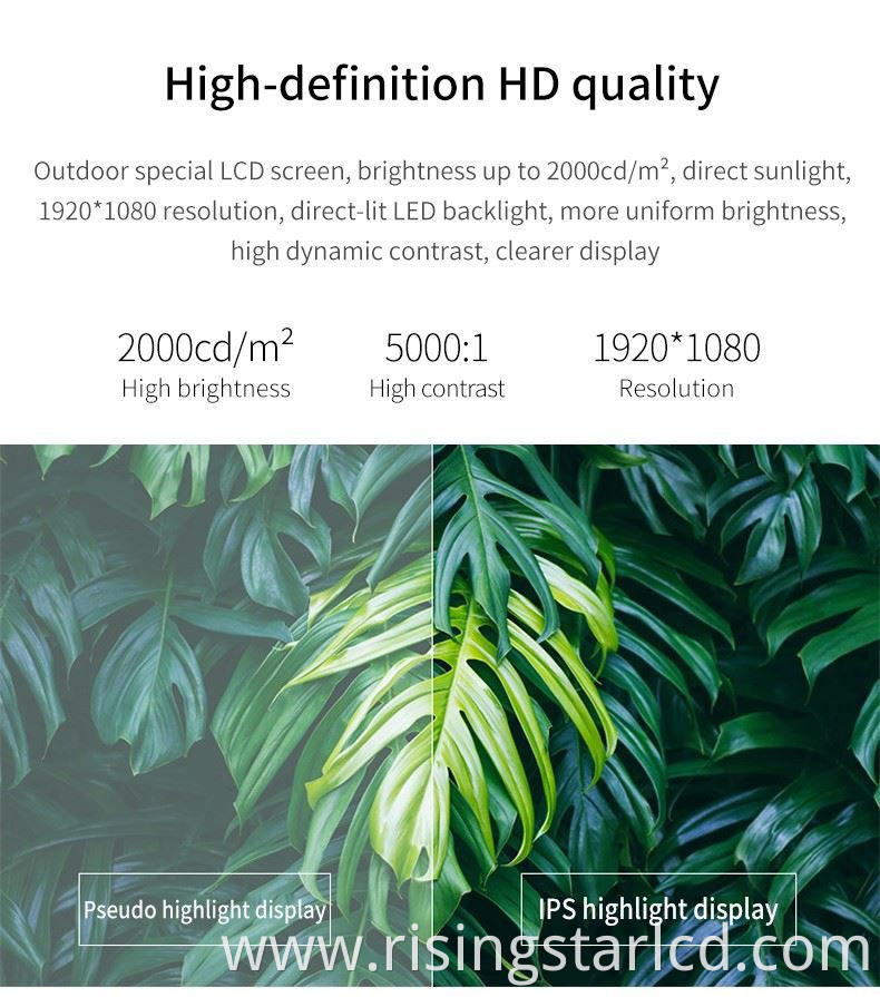 customized large size high solution sunlight readable 75" 2500nits Outdoor Lcd display panel LCD screen
