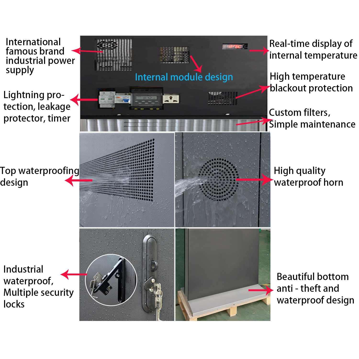 | Waterproof | IP65,Three layer compound sealant strip, multi angle water free,Three level door lock protection, hidden screw design | |