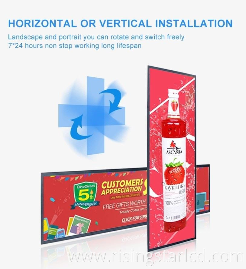Hot Tags: shelf edge stretched bar lcd, China, factory, cheap, price, customized, quotation, window facing LCD, lcd bar advertising, Commercial Stretched Lcd Display, stretch display, Bar LCD Advertising, Commercial Bar Lcd Display, Commercial Lcd DisplayLCD Panel, Lcd Module, High Brightness Display.